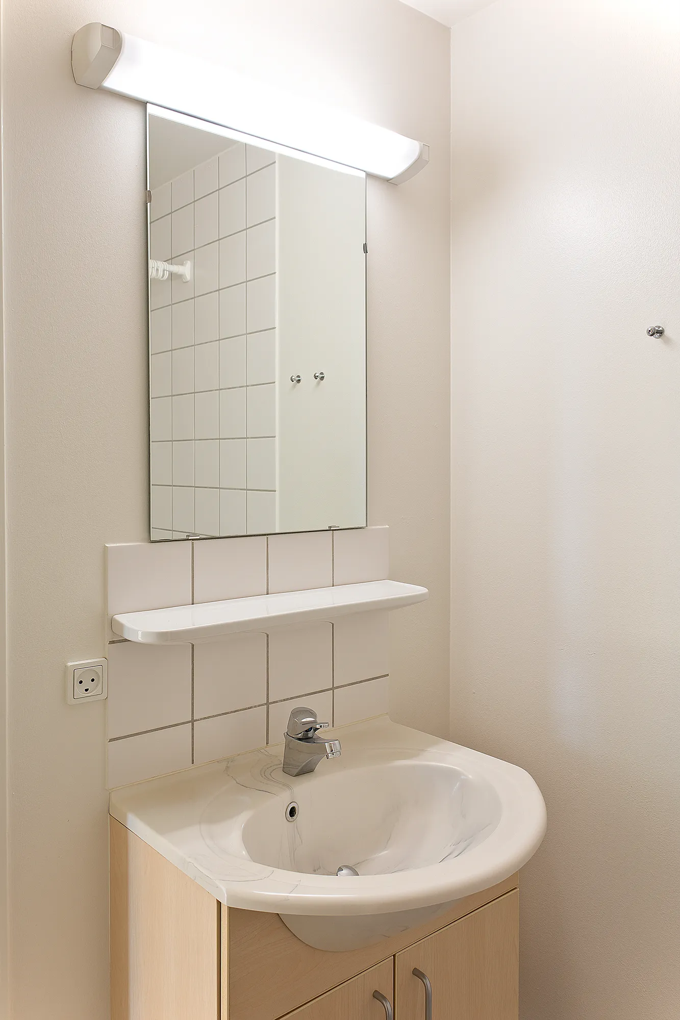 Lejligheden har et åbent køkken-alrum, der skaber en hyggelig atmosfære til både afslapning og samvær. Det rummelige soveværelse er smart indrettet med opbevaringsplads under loftet, så du kan udnytte pladsen optimalt. Badeværelset er stilfuldt og funktionelt med separat bruseniche.