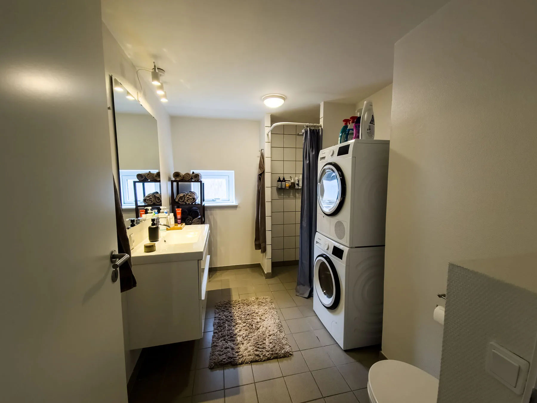Lejligheden byder på et dejligt stort soveværelse og et ekstra rummeligt værelse, som er ideelt til både ekstra soveværelse, hjemmekontor eller gæsteværelse. Det moderne badeværelse er indrettet med en bruser og skaber en behagelig ramme om dine daglige rutiner. Den rummelige stue og køkkenet er forenet i et åbent rum. Som en ekstra bonus er der en hyggelig altan, hvor du kan nyde både frisk luft og solskin. Lejligheden er udstyret med alle nødvendige hårde hvidevarer, inklusive opvaskemaskine, vaskemaskine og tørretumbler, så du ikke skal tænke på noget ekstra.